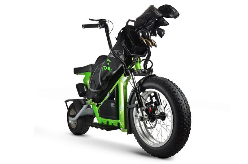 The golf motorcycle front suspension and rear shock provide a stable ride.