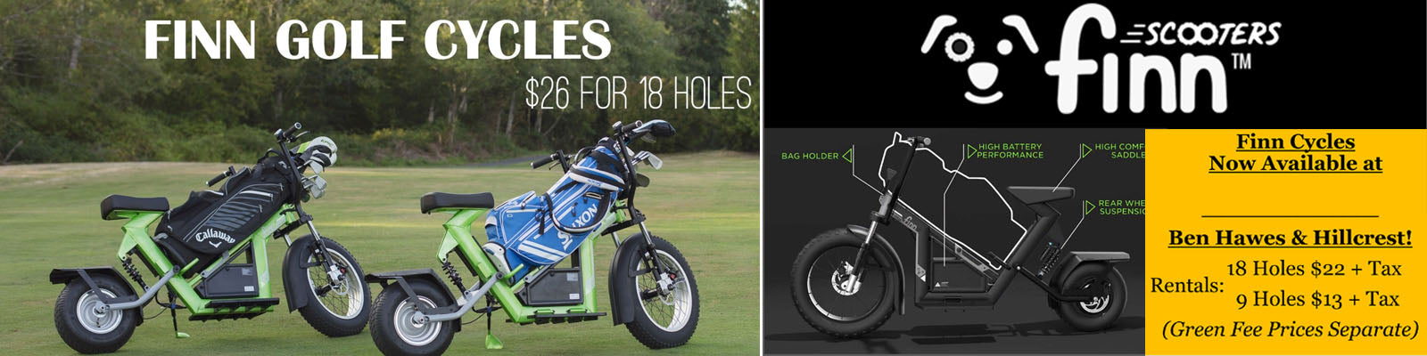 Take one fleet in Ben Hawes & Hillcrest for example: Finn golf motorcycle you can rent at $13 + tax for 9 holes; $21 + tax for 18 holes, green fee prices separate.